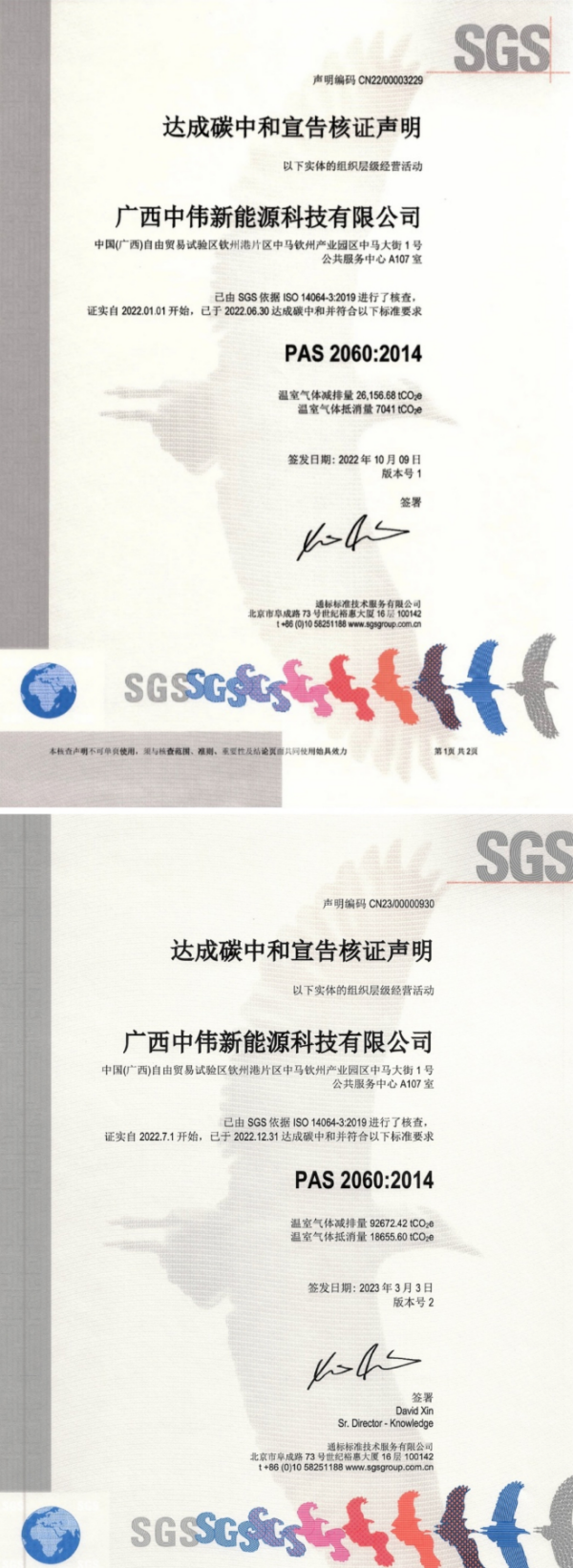 SGS是国际碳排放管理公认的测试、检验和认证机构,此次认证由SGS依据ISO 14064-3:2019标准,于2022年9月与2023年2月两次对古天乐太阳集团城钦州产业基地生产运营过程中排放产生的温室气体数据进行统计与核查,各项数据均经过详细评估、统计与现场审核,同时对相关数据声明、减排计划及中和方案进行严谨细致的文件审查、现场评审和技术评审,最终符合PAS 2060:2014的标准要求,证实古天乐太阳集团城钦州产业基地达成碳中和。