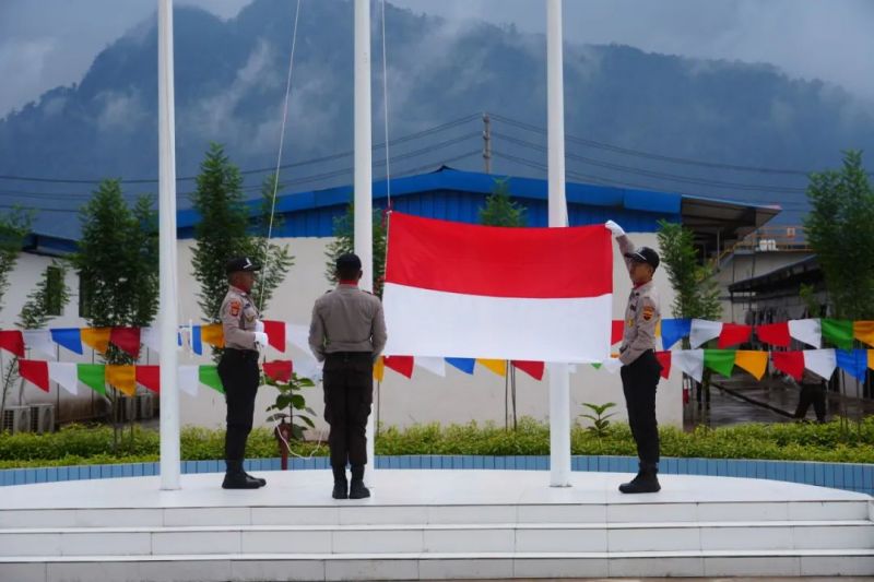 8月17日上午,古天乐太阳集团城印尼北莫罗瓦利产业基地在生活区广场举办了庆祝印尼独立日升旗仪式及庆祝活动。基地应急管理部印尼籍员工组成的印尼国旗护卫队迈着坚定整齐的步伐,护送印尼国旗入场。伴随着激昂的印尼国歌,印尼国旗冉冉升起、迎风飘扬。仪式代表分别宣读印度尼西亚独立宣言、1945年《宪法》开篇文本,颂念祷文,仪式长带领全体人员颂读建国原则。