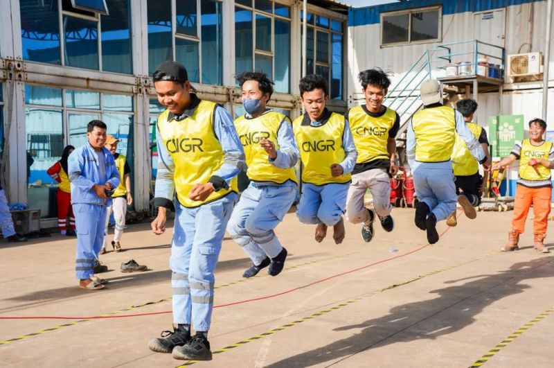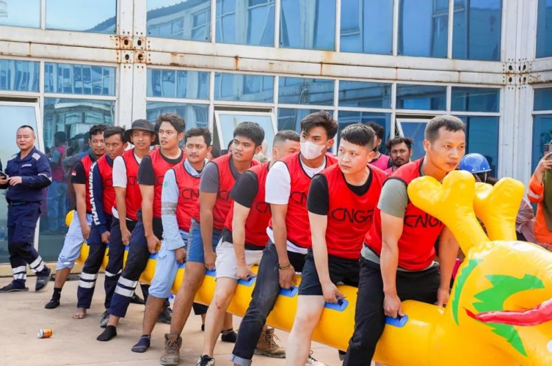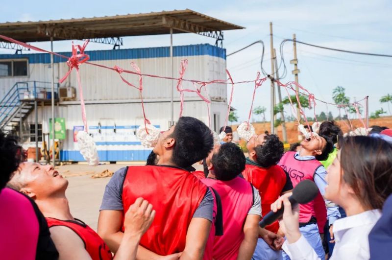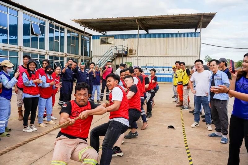 旱地龙舟赛跑、集体跳绳、拔河比赛等团体项目将活动推向了高潮,中印尼员工现场抽签临时组队,相互配合共同完成挑战,参赛选手肩并肩,手挽手,拧成一股绳,现场观众热情如火,助威声此起彼伏,团队游戏的火热氛围将现场的每一个人都联结在了一起。