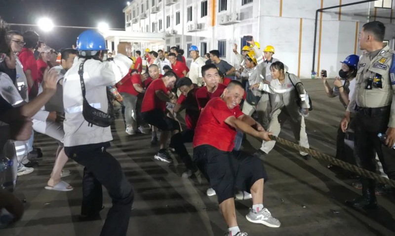 在基地的生活广场上,阵阵呐喊加油声响彻天际,“首届中印尼员工拔河比赛”正进行得热火朝天。每一次奋力的拉扯都凝聚着团队的力量与信念,在一声声口号里,中印尼员工拧成一股绳,咬紧牙关,全力以赴,不仅展现了不屈不挠的精神风貌,更在每一次胜利与失败中体会到了团队协作的真谛和勇于拼搏、不断前行的精神力量。
