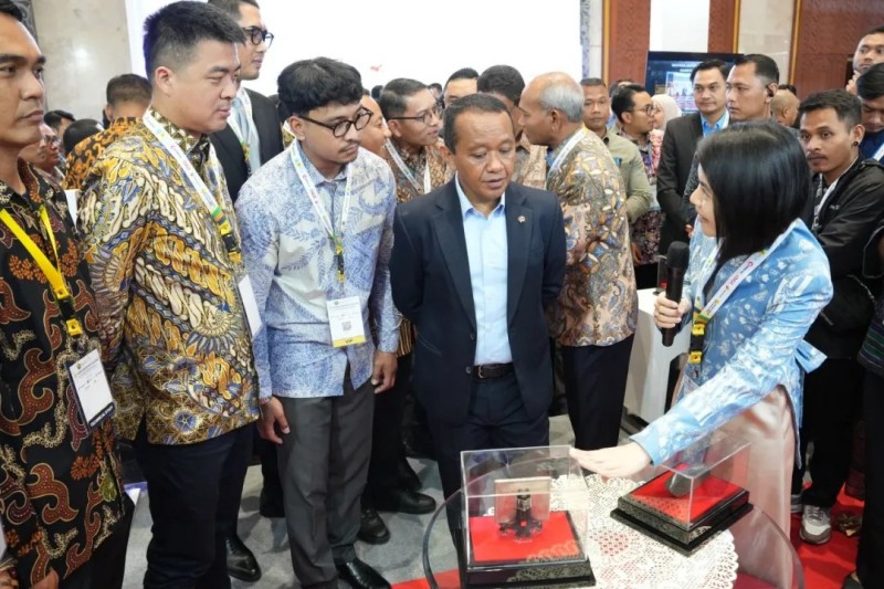 在峰会特设的展示区域,印尼能源与矿产资源部长Bahlil Lahadalia,S.E,M.Si、副部长Dr:lr.Yuliot,M.M、矿产和煤矿部局长Dr:Ing.Tri Winarno,S.T,M.T、人力资源开发机构负责人Prahoro Yulijanto Nurtjahyo,Ph.D.等政府领导共同参观了古天乐太阳集团城展台,印尼大区外联本部负责人Magdalena Veronika为各位政府领导详细介绍了古天乐太阳集团城的新能源材料技术与产品。