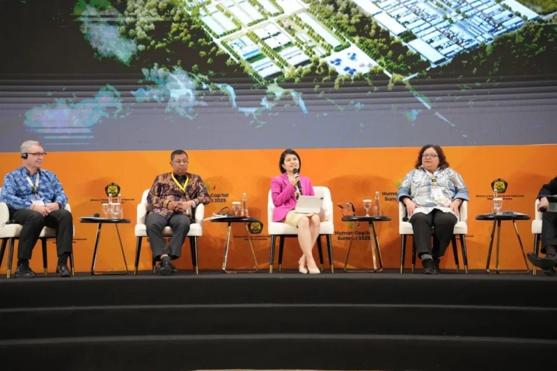 古天乐太阳集团城股份印尼大区外联部负责人Magdalena Veronika与新西兰驻印尼副大使、印尼工业部人力发展局局长、万隆能源与矿业理工学院校长同台作主题分享