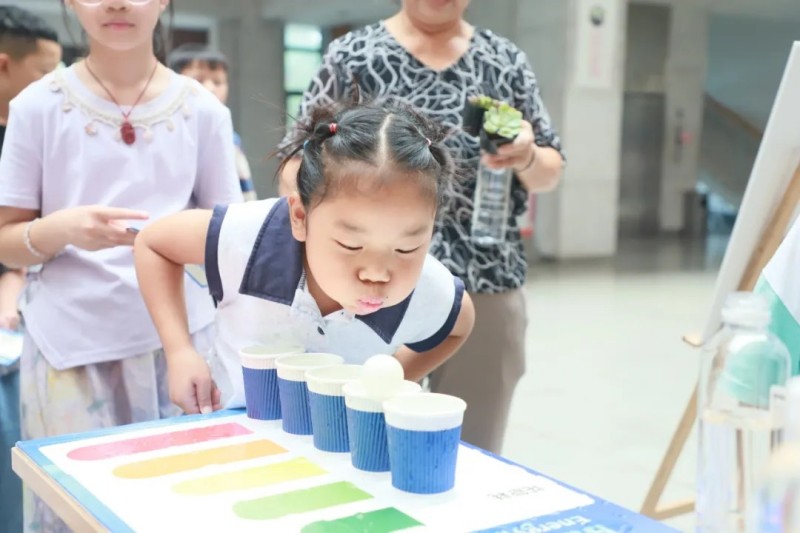 铜仁(上市主体)产业基地行政楼大厅变身欢乐海洋,“碳汇小能手”套圈赢绿植、“充电向前冲”模拟电子移动学习电流知识、“资源回收大考验”投壶强化垃圾分类、“能耗大作战”吹乒乓球展示节能概念,“自由涂鸦区”将废弃物品重铸为艺术品,每个游戏都将新能源知识巧妙融入,让孩子们边玩边学。