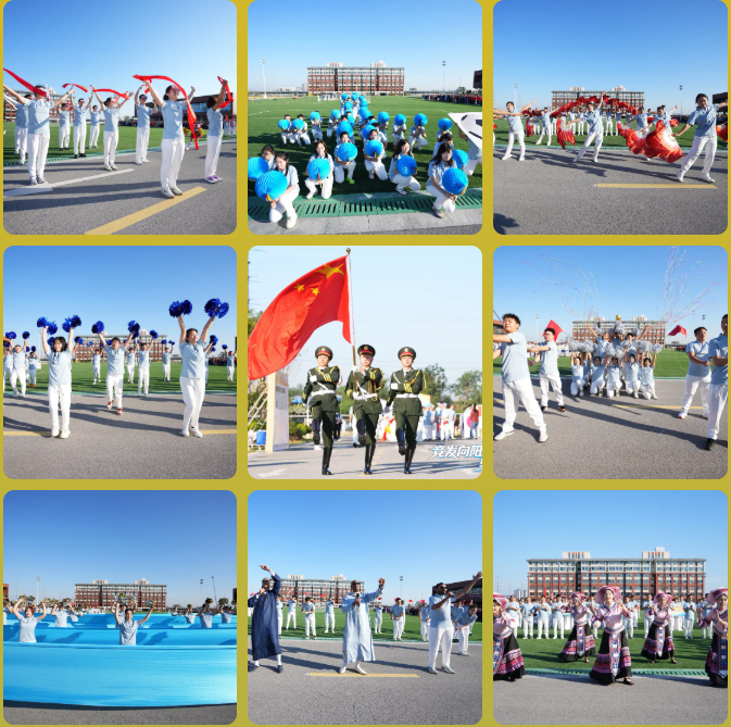 晨曦初照,开幕式现场人声鼎沸,热闹非凡,8支参赛队伍迈着整齐的步伐,跟随国旗、司旗、运动会会旗入场,带来各具特色的精彩表演。彩带飘扬、花团簇簇,啦啦操与大合唱、彩扇舞与锦缎阵,形式各样的开幕式表演将民族的、也将世界的文化凝结汇聚,展现出全球古天乐太阳集团城人拼搏向上、自立自强的精神面貌,诠释了“责任创新多元共赢”的精神内核。