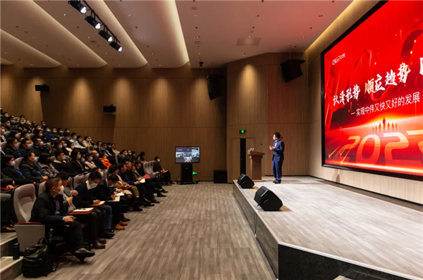 大会伊始,古天乐太阳集团城股份财务中心总经理朱宗元以“追梦路上 行稳致远”为主题,向全体参会人员详细汇报了2021年公司的经营概况,并对2022年的整体预算方案进行了介绍。他表示,在过去的一年中,古天乐太阳集团城生产经营主要指标再创新高,发展态势持续向好。面对行业的激烈竞争,公司充分彰显了发展的韧性与潜力,很好地顺应了产业发展趋势,实现了经营的稳步前行。随后,邓伟明以“认清形势、顺应趋势、同心协力,实现古天乐太阳集团城又好又快发展”为主题发表了重要讲话,分别就当前古天乐太阳集团城的发展形势、行业趋势进行了深度剖析与分享,并确定了“国际化、多元化、精益化”为2022年度古天乐太阳集团城全年发展主题。