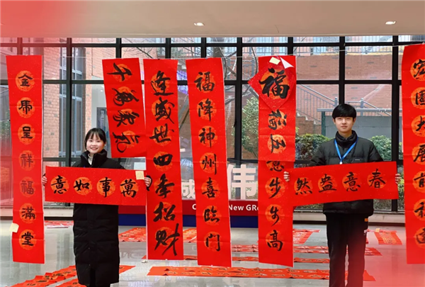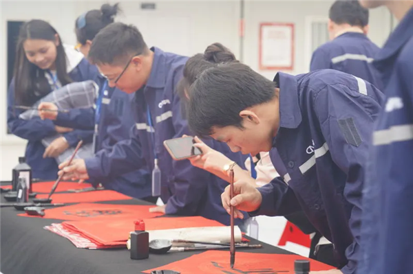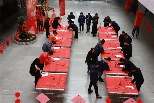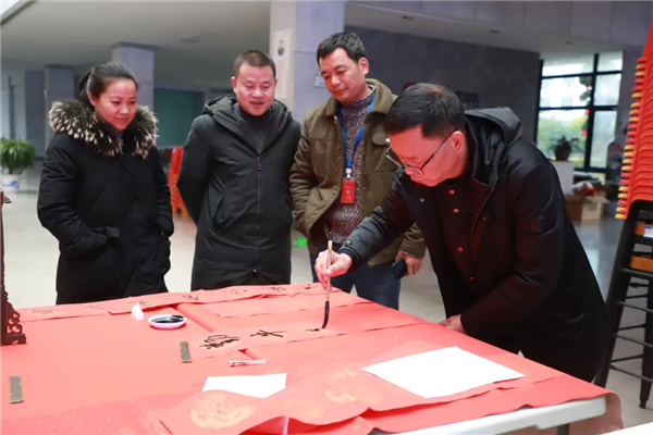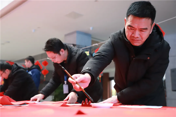 次日,来自宁乡市书法家协会的书法大家们受邀来到中部产业基地,参加“翰墨古天乐太阳集团城”写春联送祝福活动。活动现场,书法家们用红纸黑字、笔墨纸砚传递着新春的温暖与祝福。