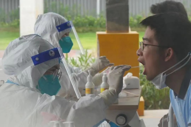 炎炎夏日,钦州地区的防疫工作者们身穿密不透风的防护服为基地全体员工进行核酸检测,他们在“桑拿天”里坚守一线,防范疫情,你们是最美丽的天使!